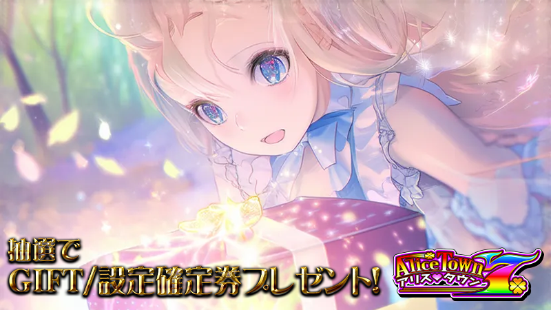 ギフトコード・設定確定券プレゼント内容: アリスタウンのポイント購入時に、抽選でギフトコード・設定券プレゼント!