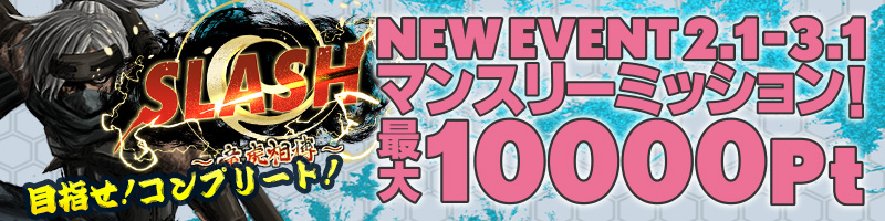 セブンフラッシュ 最大10,000Pt獲得!【SLASH -竜虎相搏-】!マンスリークエスト開催中!! 7flash 2026.02.10 2月1日~3月1日【SLASH -竜虎相搏-】!マンスリークエスト開催中!!最大10,000Pt獲得!! ↑↑↑セブンフラッシュのマンスリークエスト参加はこちらから↑↑↑