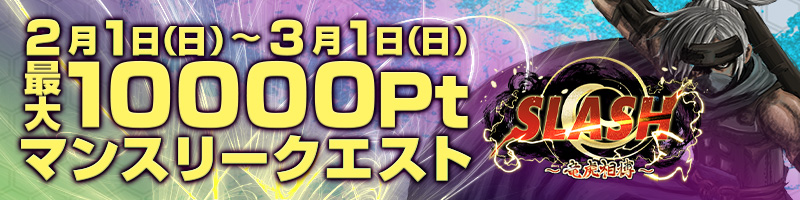プレミアムハンター 最大10,000Pt獲得!【SLASH -竜虎相搏-】!マンスリークエスト開催中!! プレミアムハンター(イベント情報) 2026.02.10 2月1日~3月1日【SLASH -竜虎相搏-】!マンスリークエスト開催中!!最大10,000Pt獲得!! ↑↑↑プレミアムハンターのマンスリークエスト参加はこちらから↑↑↑