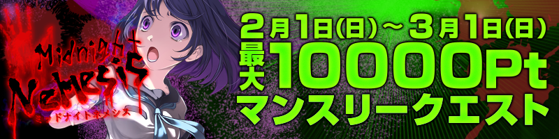 2月1日~3月1日【Midnight Nemesis】!マンスリークエスト開催中!!最大10,000Pt獲得!!