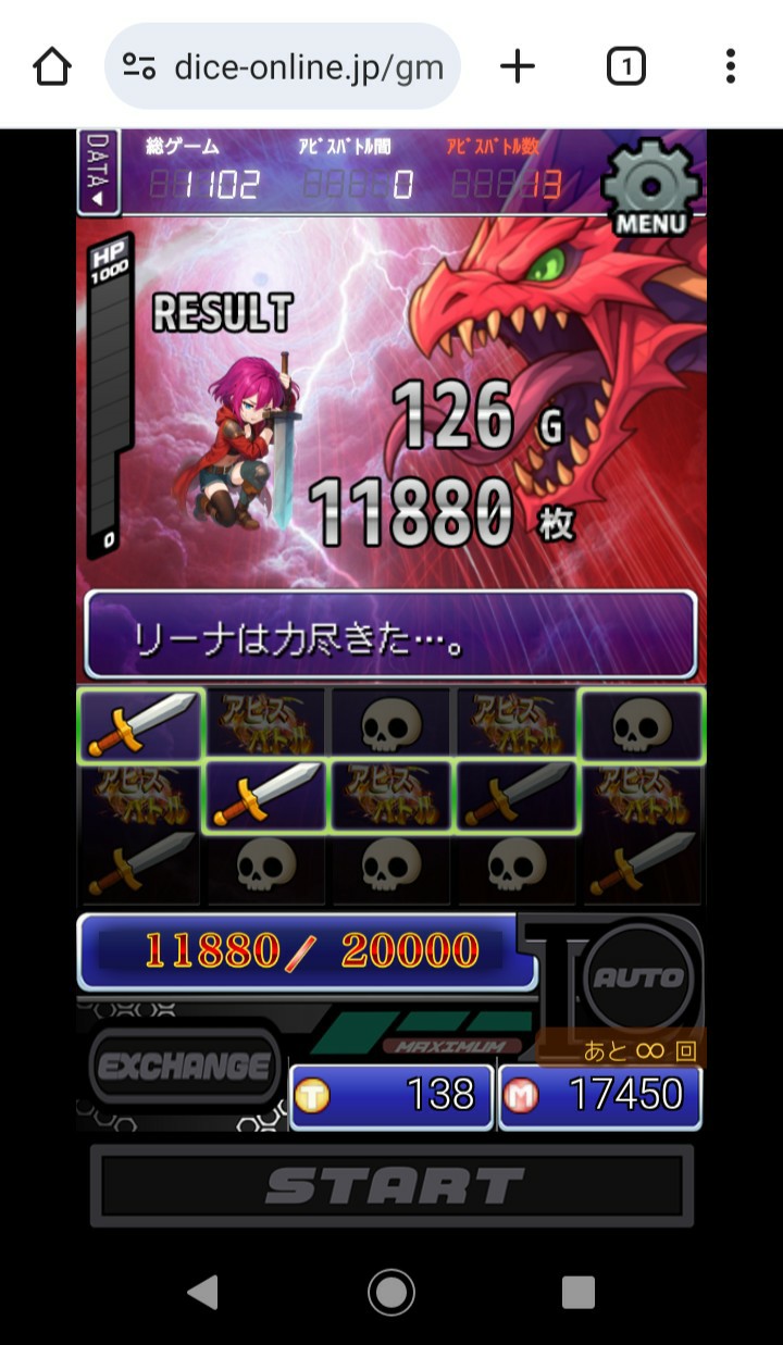 フリースピン中に何度もドラゴンインパクトが発生し、リーナのHPが中々減らない無双状態に(笑)