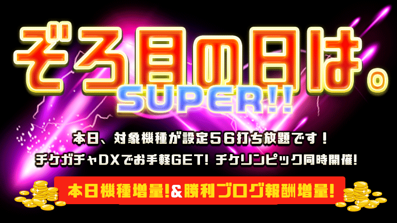 チケットエリアにて【設定2・4・6】確定イベント終日開催!