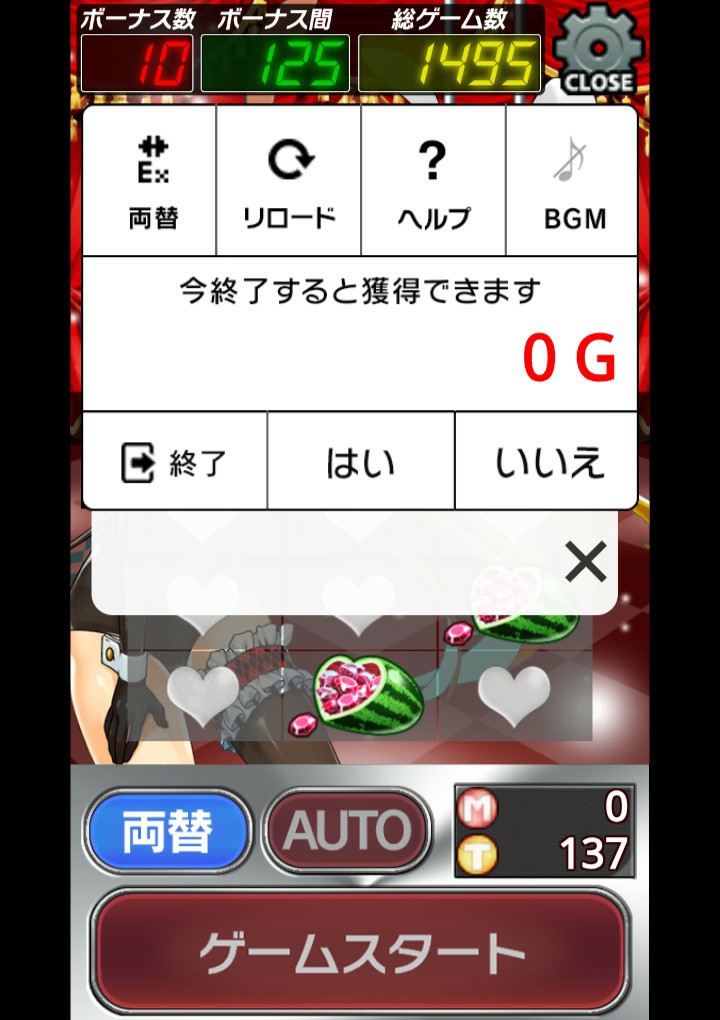 実践した結果ですが、途中何度か寝落ちしそうになりつつも1500ゲーム程回して当てたJPGは10回、SJPGに突入した回数は0回(笑)