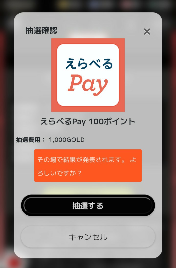 貯めたGOLDはえらべるPayへの抽選に参加する→抽選に当たれば貰える