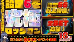 DiCE(イベント情報)全BET【設定6】確定の「ウルトラセレクト」1セット増量で開催!!