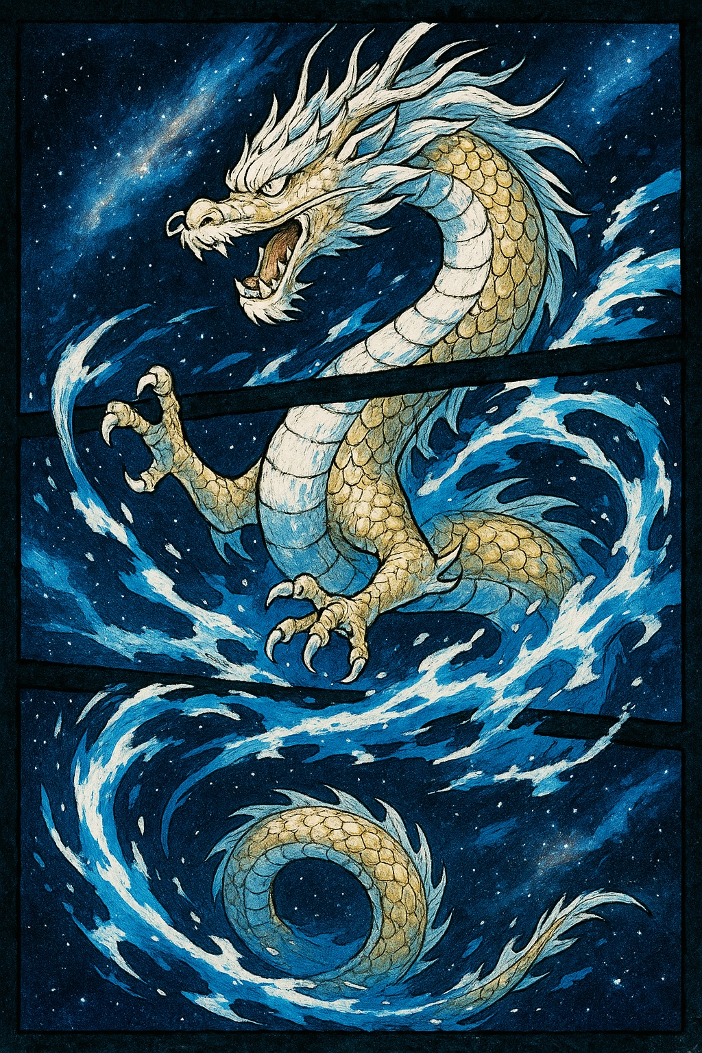 光る水蛇の宇宙の旅|イラスト版 2026開運壁紙 No.006/limited9items 2025.11.252025.11.27 水蛇モチーフをアニメ調で柔らかく描いたイラスト版。 ブルー系のグラデーションと星空が穏やかな気を呼び込み、 インスピレーションやひらめきを求めるユーザーに人気。