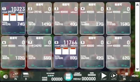 MIRACLE BOX 2025 を起動すると下のシマのような画面になり、10台の状況が表示されるので、好きな空き台を選んで着席することができます。