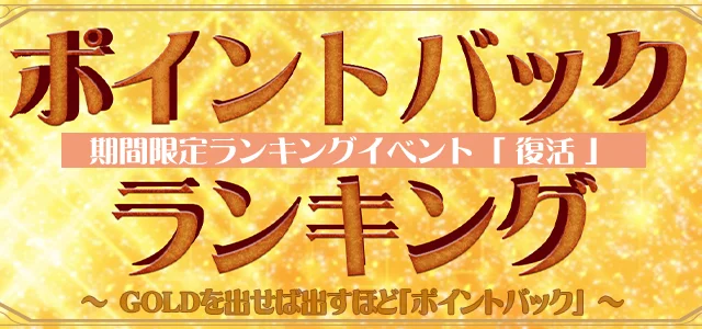 《特別イベント》期間限定「復活」ランキングイベント!「ポイントバックランキング」