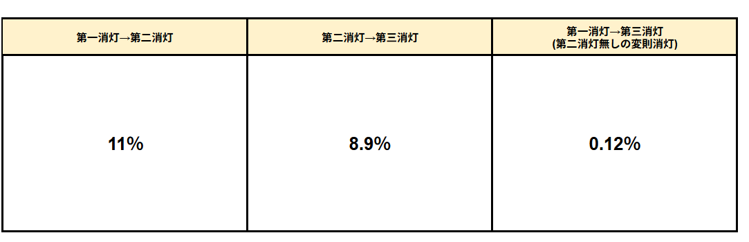第二消灯まで進んだ際の第三消灯期待度は約9%!