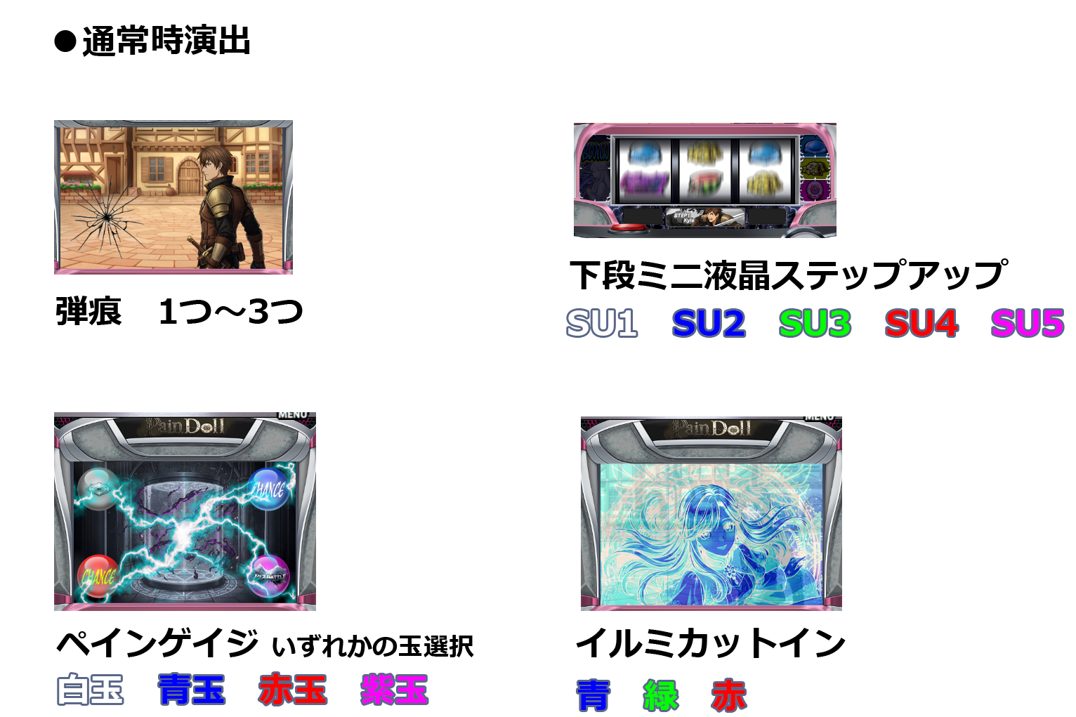 通常時、ST中、ボーナス中の各演出を覚えてさらに楽しくPain Dollを打とう!