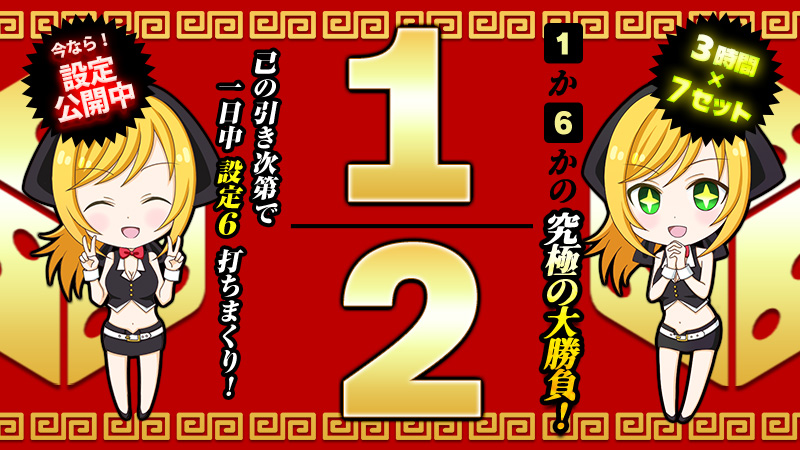 ⇒≪≪【3日間限定】100%ポイント【2倍~3倍保証】+設定6確定券抽選会!!≫≫