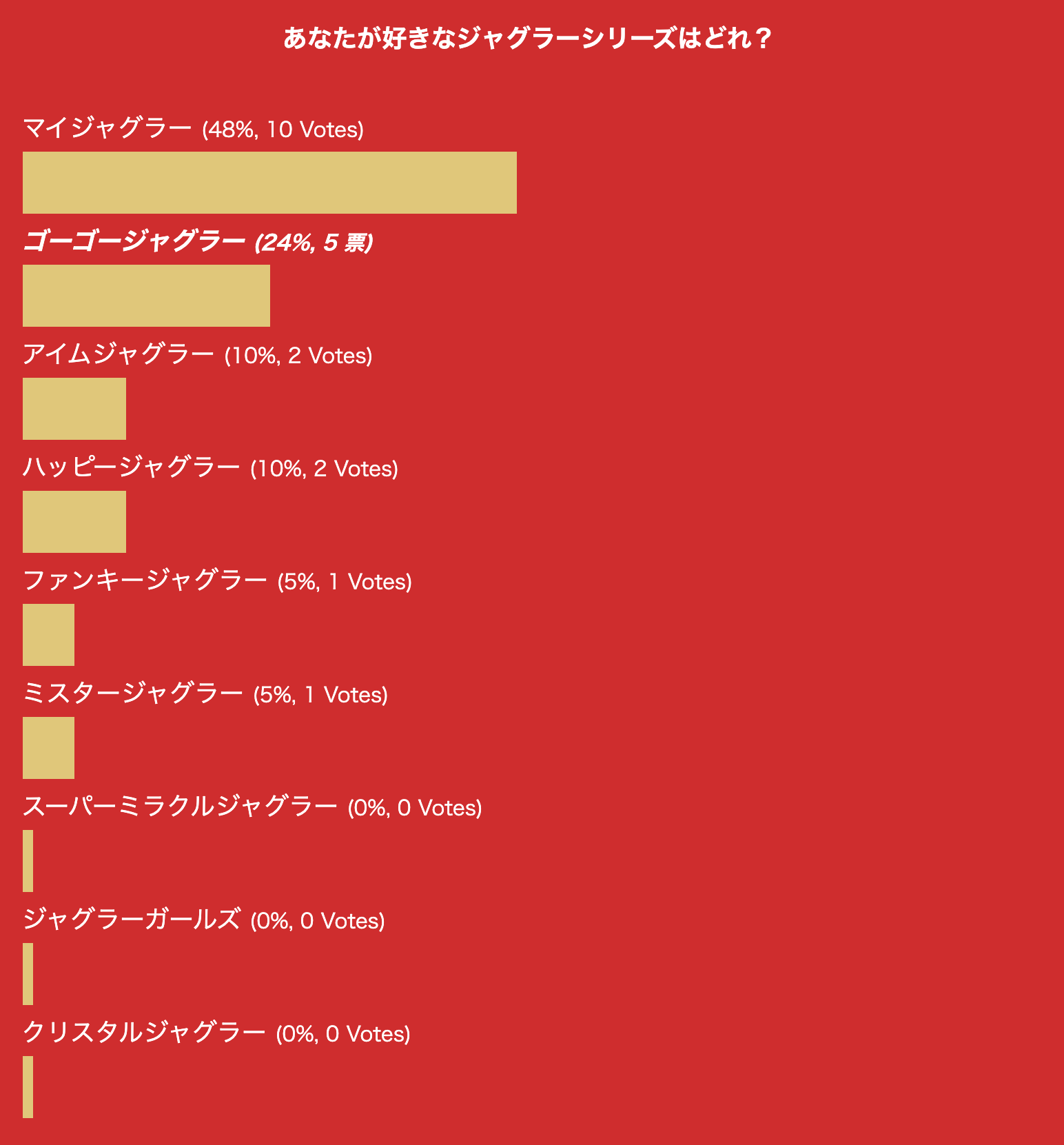 2位は意外なようで納得のゴーゴージャグラー(24%)。